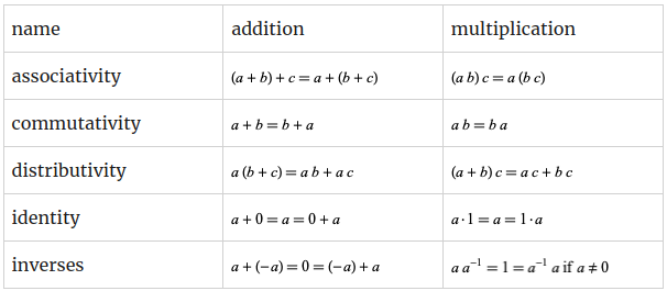 Multiplicative identity: $1v = v$ for all $v \in V$