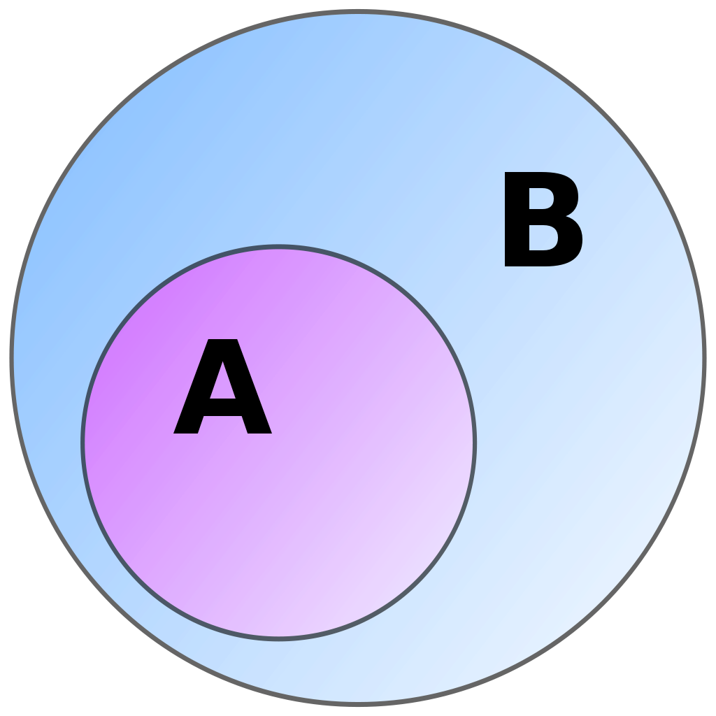 In the Euler diagram shown, if something is in $A$, it must be in $B$ as well. So we can interpret “all of $A$ is in $B$” as: $A \rightarrow B$.