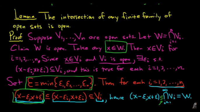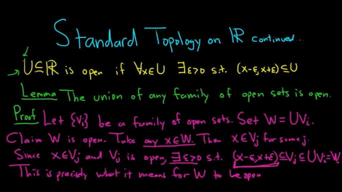 A set $O \subseteq \mathbb{R}$ is open if for all points $a \in O$ there exists an $\epsilon$-neighborhood (see epsilon-neighborhood) $V_{\epsilon}\left. (a) \right. \subseteq O$.